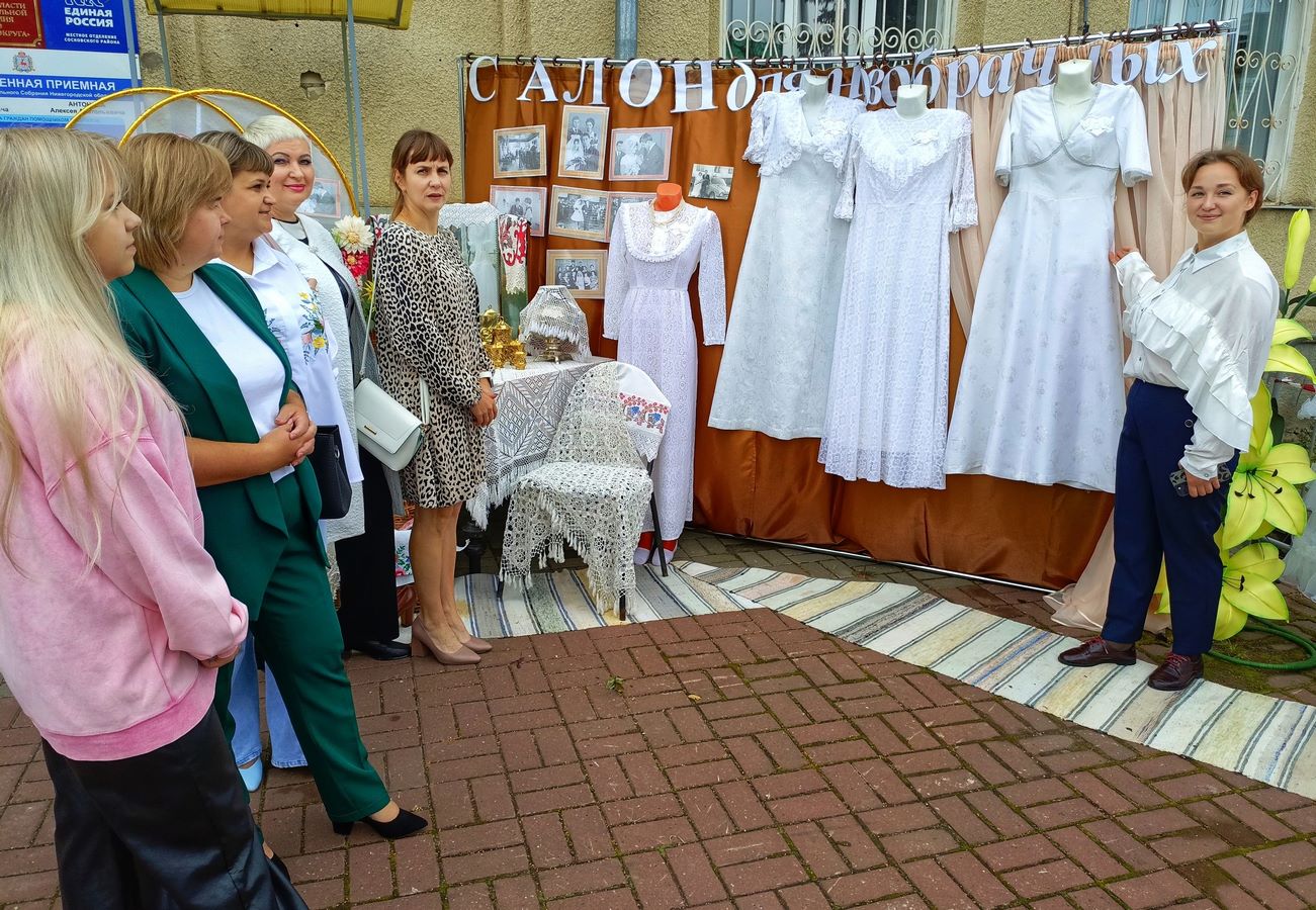 Одной из ярких страниц программы стала социальная площадка «Свадебный вальс времён», организованная учреждениями социальной защиты населения. Здесь гостей встречала трогательная фотовыставка 90-летних жителей округа. В их лицах отразилась вся мудрость прожитых лет, любовь к жизни и бесценный опыт поколений. Рядом ожила целая эпоха — выставка свадебных платьев. Скромные и пышные, нежные с рюшами и строгие со шлейфами, длинные и короткие… Они напомнили о модных тенденциях и романтике от 70-х и последующих лет. Каждое платье словно шептало свою историю о любви. Для желающих был проведён мастер-класс «Птица счастья». Талисман, сделанный своими руками, становился символом тепла и единства, и многие уносили его домой как оберег семейного счастья.