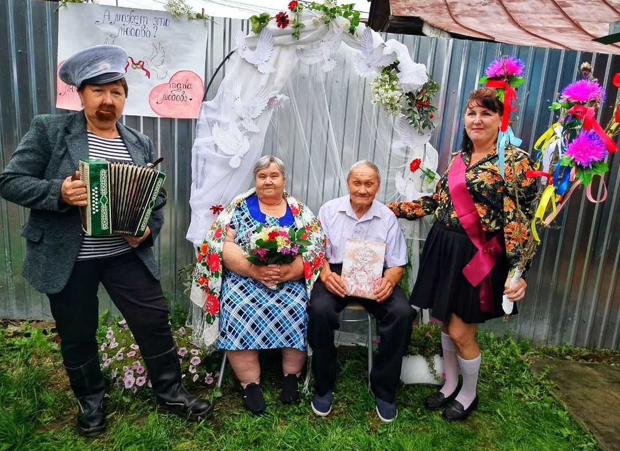 Социальные работники инициативной группы «Непоседы» из села Селитьба решили удивить юбиляров и воссоздали этот старинный символ, подарив супругам частичку молодости. А ещё в гости к ним «заглянули» герои любимого фильма «Любовь и голуби» — Василий и Надежда Кузякины, Раиса Захаровна, дед Митя и баба Шура. Весёлые шутки, задорная кадриль и тёплые поздравления сделали праздник по-настоящему незабываемым.